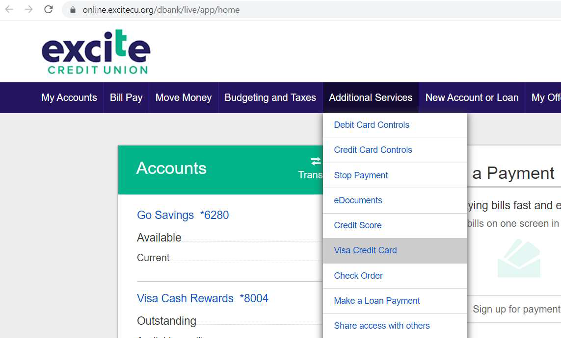 Step by Step Instructions to Make an Excite Credit Card Payment online.