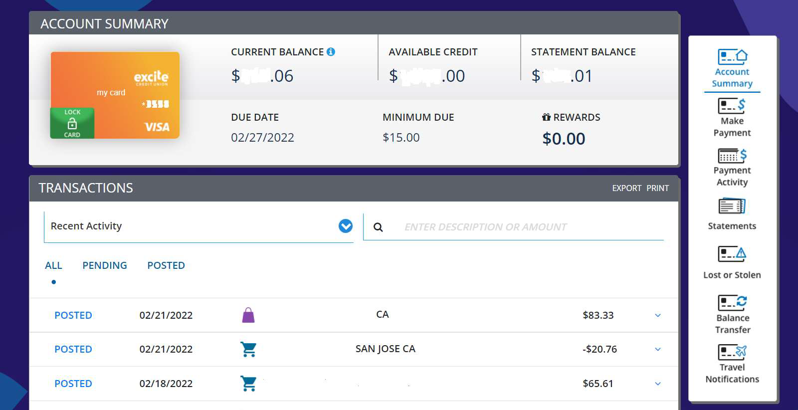 Thank you for reaching out for information on making a credit card payment on our online banking platform at www.excitecu.org.