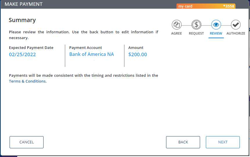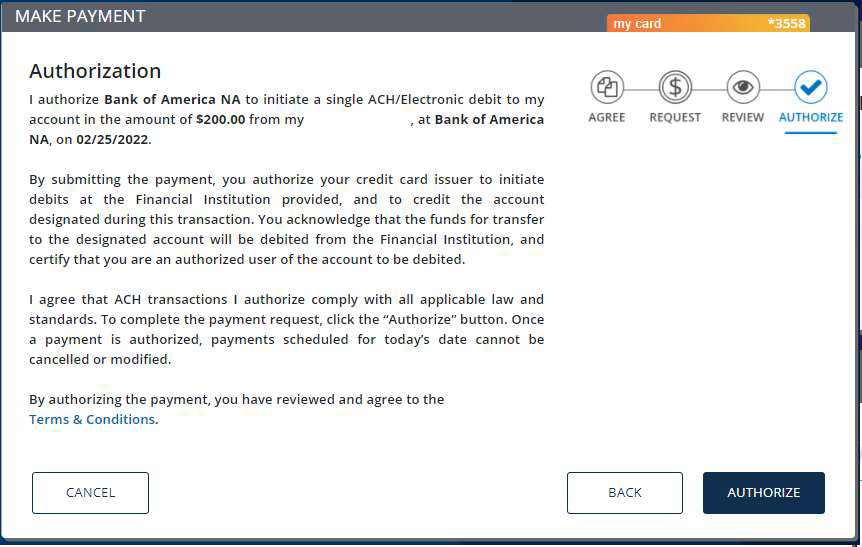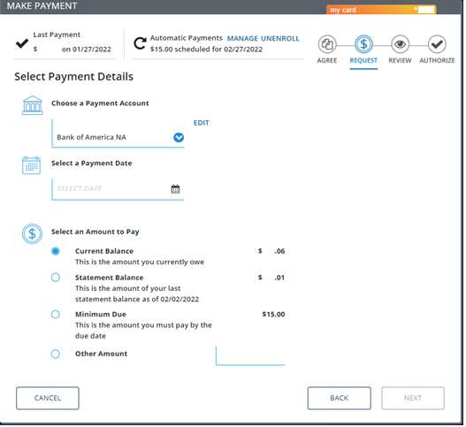 - Step 4: Click on “Make Payment” (you can use an Excite account to pay from or delete that account and add an outside account to pay from).